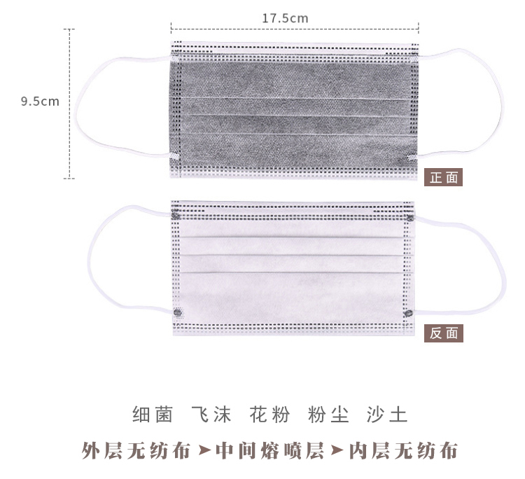 商品材質(zhì):無紡布+熔噴布+活性炭